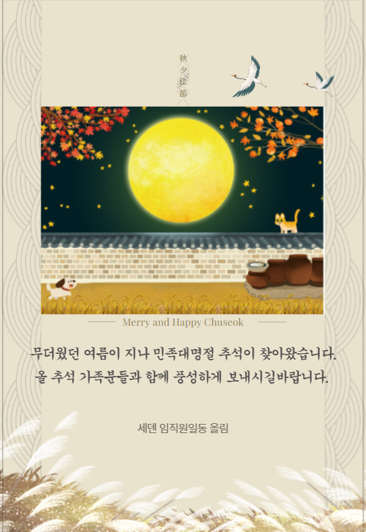“마음까지 넉넉해지는 추석, 건강과 행복을 기원합니다”